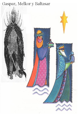 He de confesar que he tenido que pedir ayuda para diferenciar a Melchor de Gaspar porque, pese al clásico de que uno es rubio y otro canoso, nunca recuerdo cuál es cual y en ambas imágenes aparecían con el pelo blanco los dos. El elemento final de decisión fue que Baltasar entregó incienso a Jesús y Melchor oro, con lo que los distinguimos por el recipiente en el que llevan los regalos.