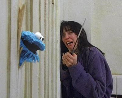 Hacía días que no entraba en SOMOS de modo que llevo un rato dándole a «Previous Entries» para leer los últimos post que ha publicado. Me he encontrado con uno del 11 de enero en el que habla del cambio de vida de nuestro querido Monstruo de las galletas (Triqui, Triki, Elmo —en américa latina—, Lucas…) y donde publica el montaje enlazado más arriba y que me ha encantado. Creo que El Monstruo de las galletas da más miedo que el verdadero Johnny de El Resplandor.
