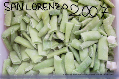 Con la elección de las judías verdes he querido realzar la parte más gastronómica de las fiestas, pues todos nos damos unos nutridos banquetes para soportar con fuerzas las altas horas nocturas (y generalmente matinales) que solemos alcanzar. Otro punto relacionado con ello es que San Lorenzo es el patrón de los cocineros, por lo que esta elección le representa muy bien.